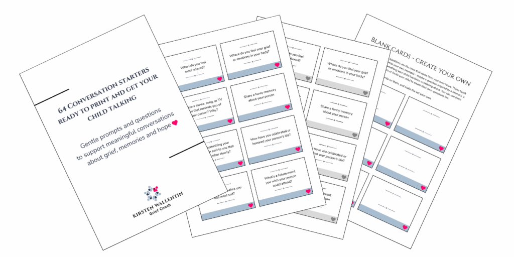 If you’re looking for a simple and gentle way to start conversations with your child about their grief, you might also find my Conversation Starters for Grieving Children helpful.
